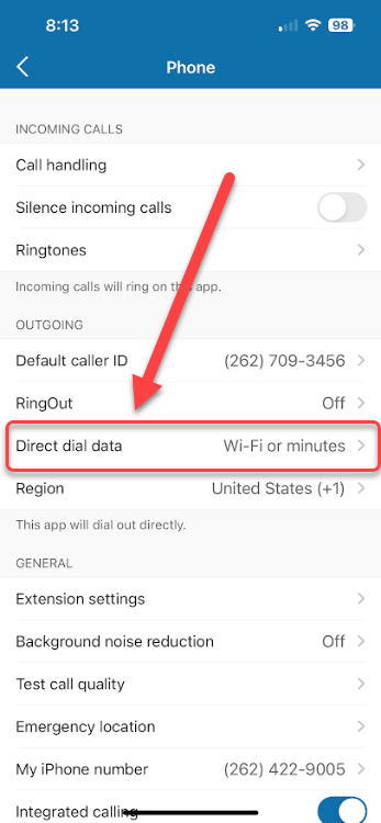 - When is Direct Dial Data choose either <WIFI or carrier minutes> or <Carrier minutes only>