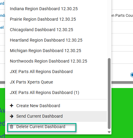 - Once you've verified all information is correct, open the drop-down at the top again, and click Send Current Dashboard to share with the appropriate people.