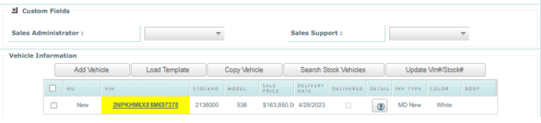 Click the VIN number located in the Vehicle Information box on the Transaction Sheet.