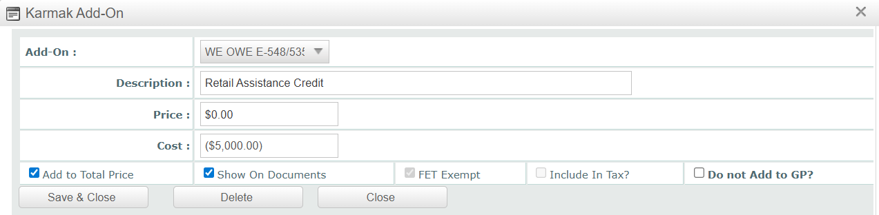 If you anticipate a vendor credit (e.g., retail assistance, additional allowance, etc.), enter the expected amount as a negative number in the COST field and leave the PRICE field blank.